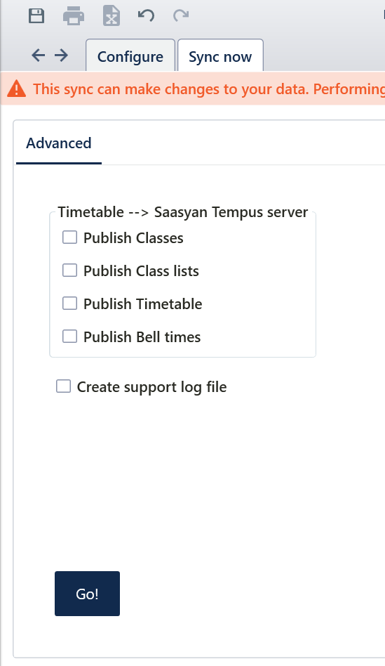 Advanced sync is used to publish specific data to Saasyan Tempus.