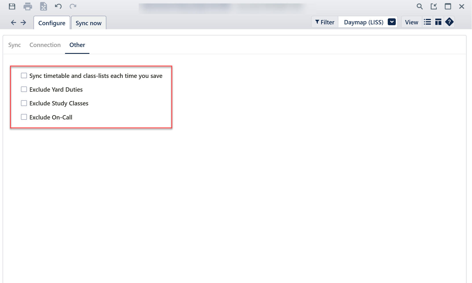 | Exclude Study classes | When ticked Study classes will be ignored for syncing purposes |