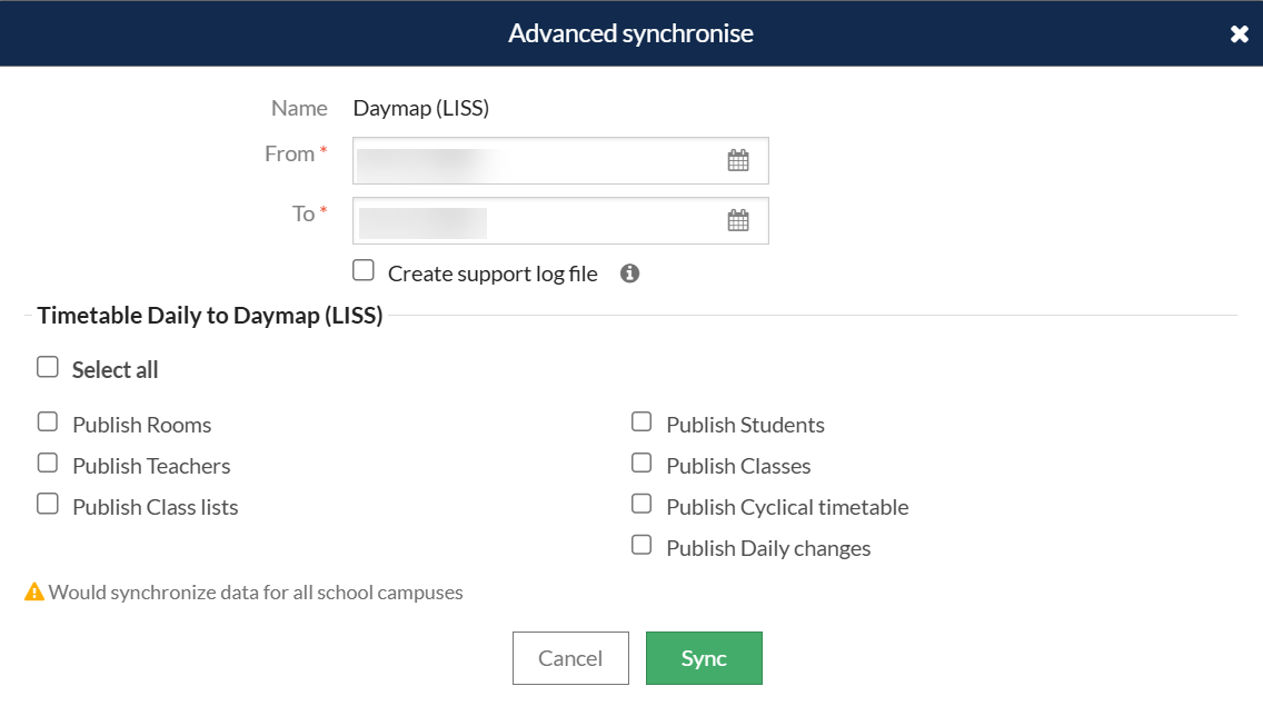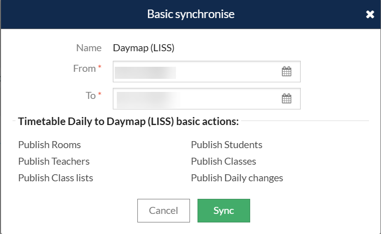 - Go to Daily > Synchronise and select the Daymap sync configuration.