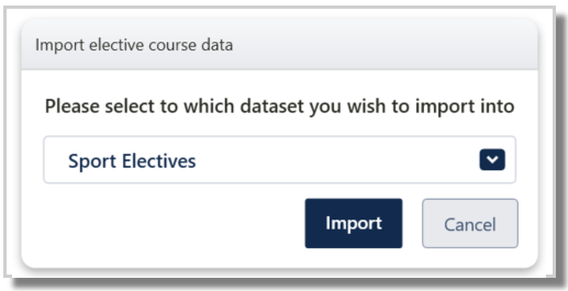 Select File > Import data > Elective course data and the correct dataset when prompted.
