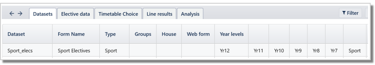 In Lines > Elective data (F10) follow the steps below to create a Sport dataset: