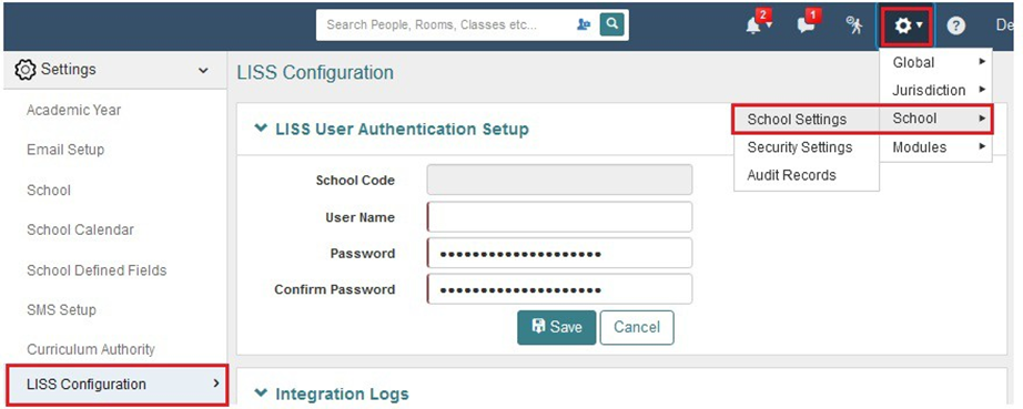 - LISS Configuration: Set up a Username and Password that will later be entered into timetable file to authenticate the user to perform the sync