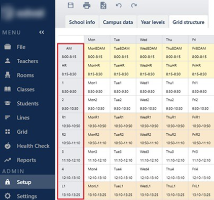 * Note that bell times in timetable file do not sync to CES; bell times must be set up correctly in CES.