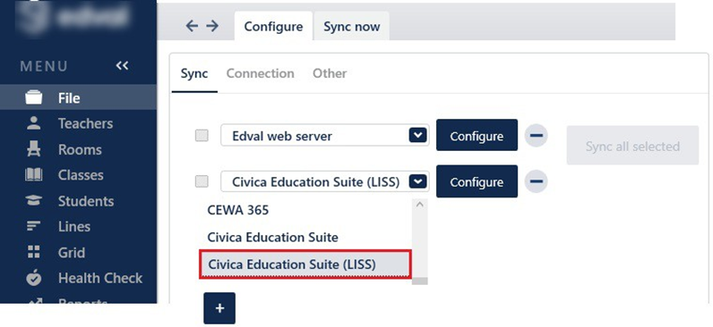 (The image below shows that the Edval web server sync is also configured for Timetable Daily purposes.)