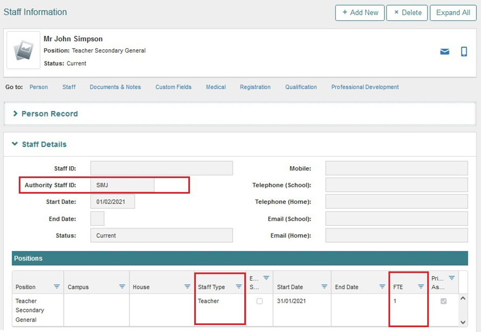 Teacher details downloaded are: Authority Staff ID, First name, Surname, gender, school email address and home phone number.