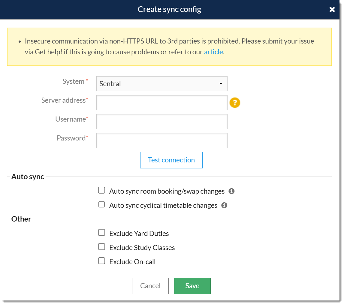 - Enter your Sentral credentials. Please contact Sentral if you're unsure about these details.